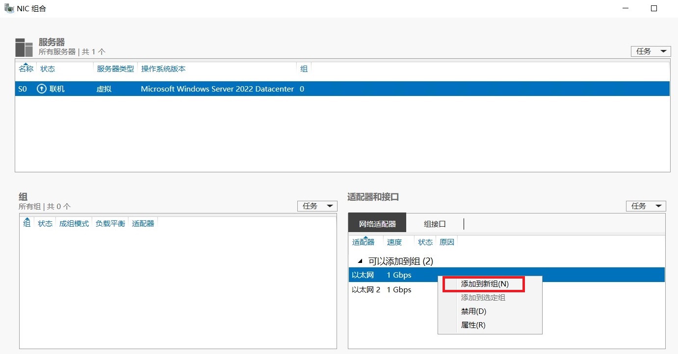 启用NIC ,将2块网卡添加到一个组中,并将组名称设置为NG1。
